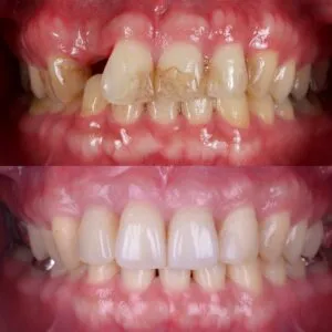 - 解説:生まれつきの歯並びの悪さや、過去の治療で被せ物の高さが合っていないことが原因で、噛み合わせのバランスが崩れている可能性があります。