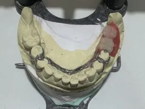 このまま放置すると、顎や首に負担がかかるため、部分入れ歯と咬合再構成を組み合わせた治療を行いました。